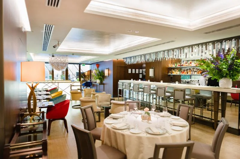 The restaurant itself has a contemporary classy design with extravagant details including a stunning fibre-optic chandelier. There is a stylish bar and lounge downstairs and on the way to the bathroom is a wine cellar tucked away, with a well stocked bar on display back upstairs.